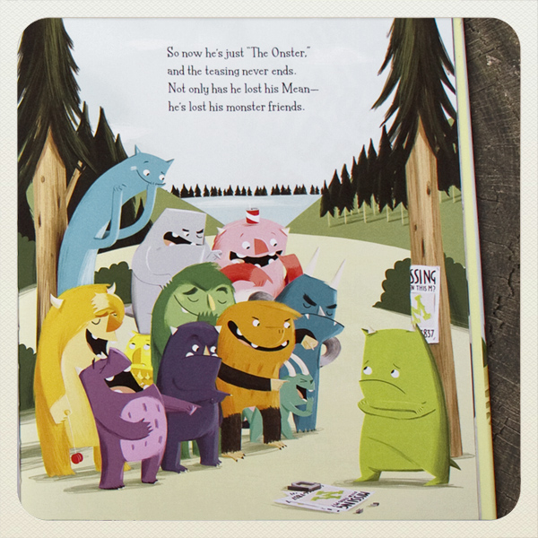 My second picture book, 'The Monster Who Lost His Mean' is officially out next week - hurrah! Written by the wonderful Tiffany Strelitz-Haber, and published by Henry Holt Books for Young Readers, it's the tale of the 'Onster': the monster who loses his 'M' (for mean!), but finds that it's not what you are, but who you are that matters most. It's available to pre- order now (official release July 17, 2012), and you can snap up a copy from Indiebound, Barnes and Noble or Amazon (US) / (UK). Check out some more sneak peeks HERE!